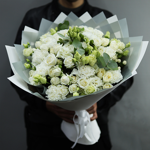 Букет "Маскарпоне" из роз, диантусов, эустом и гиперикума